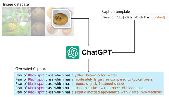 Captions generated by ChatGPT may contain potential inaccuracies and biases [37,38]. To address this, we conducted a systematic evaluation of caption quality using a predefined template developed based on expert guidelines. This template ensures accurate identification of the sample’s species and defect types. Additionally, we verified the descriptions of texture and shape generated by ChatGPT, correcting any inaccuracies as needed. All captions were manually reviewed and curated. This process was feasible given the relatively small size of our dataset (3.9 K samples). Furthermore, the use of ChatGPT was intended to introduce a degree of subjectivity, rather than strictly human-like objectivity. As such, we tolerate a certain proportion of hallucinated details that help resolve ambiguous cases—such as unclear texture, shape, or color, or the presence of multiple objects in a single image [39,40]. We would like to emphasize that the goal of this study is not to achieve perfect accuracy in the generated captions, but rather to explore the potential of VLMs in agricultural applications. Therefore, ethical considerations regarding the use of AI-generated content are acknowledged but not discussed in depth in this paper [41,42].