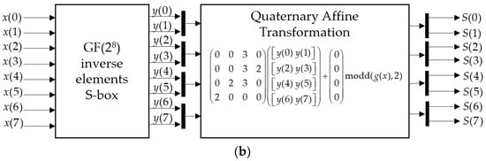 - Sokolov, A.V.; Radush, V.V. The method for synthesis of high-quality S-boxes based on many-valued logic functions. Inform. Math. Methods Simul. 2022, 12, 219–225. [Google Scholar]