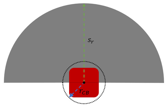 The CartBot is capable of avoiding both static obstacles (such as shelves) and dynamic obstacles (including humans, employees, and other CartBots). It can also dynamically recalculate its path in response to changing situations. For active obstacle avoidance, this work considers the use of onboard sensors, such as LiDARs or cameras, mounted on the CartBot. The grey area in Figure 2 represents the sensing range, defined by an arc of radius and a central angle of 180°.
