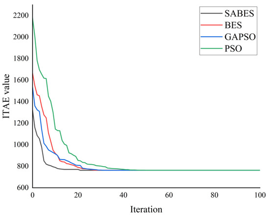 To test the merits of the sought value to introduce the fitness function, that is, the time-weighted absolute error integral (ITAE), the size of which can simultaneously reflect the controller on the system′s regulatory speed, overshooting, error, and other aspects of the information, the following formula is defined: