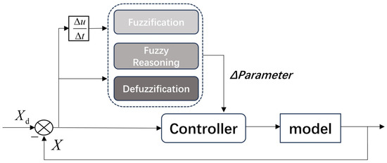 Fuzzy control is a method based on fuzzy logic that addresses uncertainty and complexity. It is particularly suitable for systems where the model is unclear or difficult to describe precisely. The theoretical foundation of fuzzy control was established by Lotfi Zadeh, a renowned American computer scientist, in 1965. The fundamental idea of fuzzy control is to utilize fuzzy sets and fuzzy inference methods to replicate human decision-making processes. Traditional control theory relies on precise numerical values for inputs and outputs, while fuzzy control utilizes fuzzy sets to model uncertainty. A key feature of fuzzy sets is their ability to allow elements to have partial membership, rather than being strictly inside or outside a set. The process of fuzzification, fuzzy inference, and defuzzification—through which outputs are sent to various modules to adaptively adjust the system’s control parameters—is central to the operation of fuzzy control. The fuzzy process is shown in Figure 4.