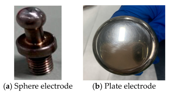 The electrode configurations (sphere–plate) simulate uniform (f ≈ 1), slightly non-uniform (1 < f < 2), and highly non-uniform (f > 4) electric fields. The highly non-uniform (f > 4) electric field is used to simulate faults in electrical equipment. The electric field non-uniformity range of the object studied in this article is between 1.05–1.35, which belongs to a slightly non-uniform electric field.