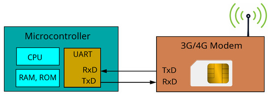 Simplified block diagram of a microcontroller module with a connected 3G/4G modem.