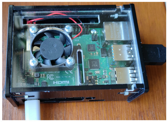 In the solution described, the ESP32 (Wi-Fi module) is used for communication with the server. It is a low-cost microcontroller with built-in Wi-Fi and Bluetooth capabilities. It serves as a bridge between the sensor node and the Internet. The key functions of the ESP32 in this system are Wi-Fi connectivity and the MQTT client. Direct communication between the AVR microcontroller and the Internet is not possible. The important function of the ESP32 is an MQTT client. It receives data from the AVR microcontroller and sends them to an MQTT broker. The sensor board with the AVR and ESP32 microcontrollers is shown in Figure 10, while the board that acts as an MQTT broker is shown in Figure 11.
