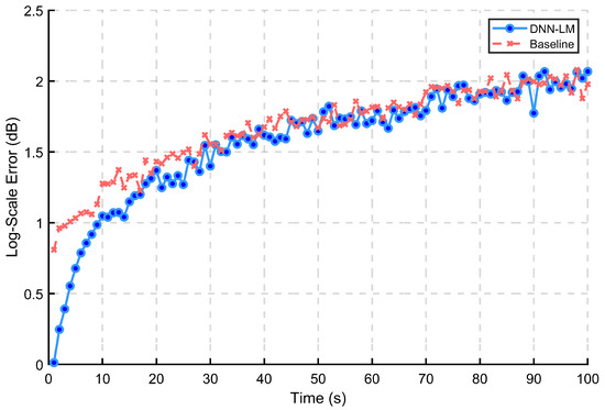 Figure 3 shows the error reduction over time. The DNN-LM approach achieves a significant reduction in error compared to the baseline method.