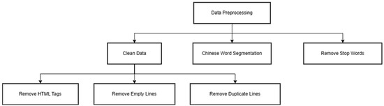 Before processing the data, the JSON-formatted data files are first converted to Excel format for easy viewing and a preliminary analysis using Excel. Since the data crawled from the web contains HTML tags, regular expressions are used to remove HTML tags from the text, ensuring that the extracted text content does not contain any HTML code. In the collected data, there may be blank lines, which need to be detected and removed to improve the data quality. In addition to HTML tags, the text may also contain other non-textual characters or special characters, such as content between “<” and “>”. Removing non-textual characters and special characters ensures the cleanliness and readability of the text, facilitating the generation of embedding files.