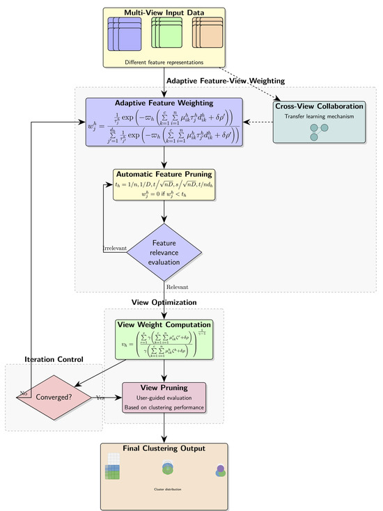. Furthermore, the algorithm considers all feature components within each view during clustering, which may degrade performance if irrelevant or redundant features are included. To address this, feature selection or reduction techniques, such as those employed in FRMVK [