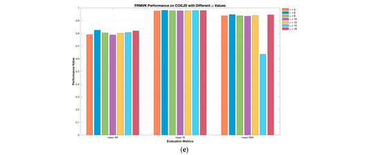 Figure 7b shows that the less the number of views, the better discriminated is the importance of one component. As the number of views decreased to two, G-CoMVKM recognized that intensity has the highest contribution in discovering the pattern of ORL face data. However, it linearly decreased the performances by 7.35% ARs, 5% RIs, and 4.21% NMIs. Observing these results, we conclude that the decreased number of views within MV data does not guarantee an upgrade phenomenon on clustering performances.