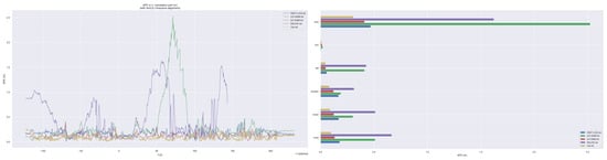 To further characterize the performance of the proposed method, we conducted detailed comparisons of absolute trajectory error (ATE) variations across multiple algorithms on low-light scene sequences gate_01 and street_03, with quantitative results illustrated in Figure 10 and Figure 11. Comparisons with existing mainstream algorithms demonstrate that the proposed method maintains superior performance in most scenarios. It should be noted that the Voxelmap++ algorithm failed to run properly on the street_03 sequence, so its data are not included in Figure 11. Notably, Figure 10 shows that our method experiences a sudden increase in trajectory error in certain sections of the gate_01 sequence, and an analysis of the trajectory visualization in Figure 8b indicates that this anomaly is due to violent rotational transformations present in the sequence. In contrast, the motion pattern in the street_03 sequence is relatively stable, and as shown in Figure 11, the proposed method maintains a consistently low error level throughout this sequence.