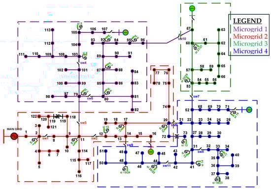 | Microgrid No. | Bus No. (GAMS-IEEE 123) | No. DER Resources | UDC Buses |