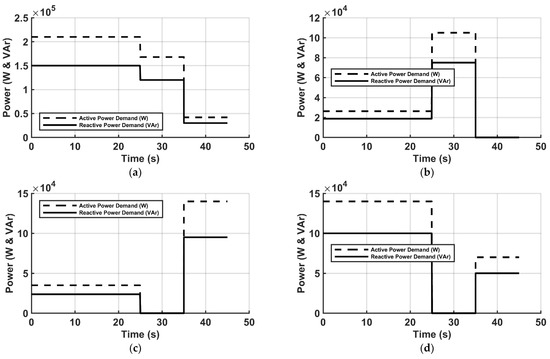 - Active power load (P_load) and reactive power load (Q_load);