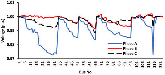 | IEEE 123-Bus Network Benchmark | Active Power (kW) | 1463.861 | 963.484 | 1193.153 | 3620.498 |