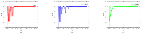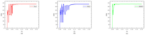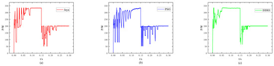 Simulation under Scenario 2. (a) Jaya; (b) PSO; (c) IHHO.