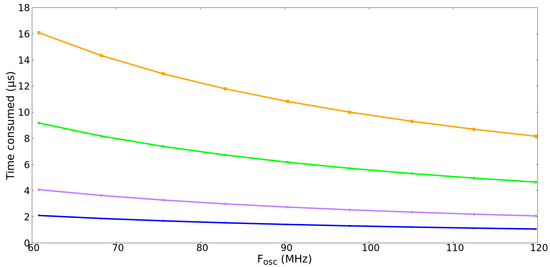 - Performance analysis: Performance testing was centered on assessing the temporal behavior of the services provided by AK. In this same section, current consumption tests were performed in relation to the microcontroller’s clock frequency. The objective of these tests was to obtain satisfactory assurance of AK’s suitability for use in solving real-life engineering problems.