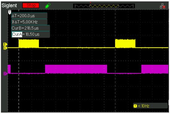 Speed_controller and Pos_Att_recorder are two real-time processes, and Communications is a sporadically triggered, non-real-time process. Communications can generate a maximum blocking time by priority inversion of s to the Speed_controller and Pos_Att_recorder processes. This short blocking time is achieved because the communications component benefits from the fact that the data transfer to and from the microcontroller, which is responsible for the navigation software, is performed via the Direct Memory Access (DMA) device. In the dsPIC33E family, the SRAM memory is dual-ported and the DMA device operates with independent data and address buses without affecting CPU operation (see Chapter 22.1 in [46]). In addition, the activation period of the real-time processes is ms. Also, the computation time of the speed controller is s, and that of the position and attitude recorder is s. Then, substituting the above data into (2), we obtain , and , where . Therefore, the system is schedulable. □