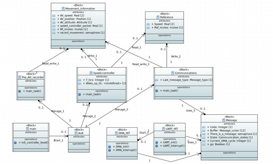 Finally, we end this section by mentioning that the communications protocol between the navigation level and the control level is orchestrated by the Communications process. However, this protocol is distributed among the Communications process, interrupt treatments (i.e., UART_INT and DMA_INT)) and a data structure (i.e., Message).
