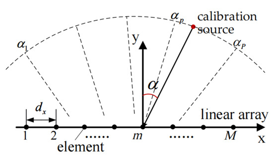 Considering the linear array first, the precise position of the calibration source or target is unknown in the autocalibration scenario involving array gain and phase errors. Hence, accurate incident signal information has to be obtained through DOA estimation to construct the ideal array response; then, this has to be combined with the actual array response to estimate the gain and phase errors of each array element.