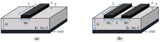 Microstrip lines. (a) Geometry of a single microstrip line. (b) Geometry of coupled microstrip lines.