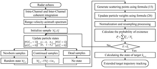 PFTBD: This method improves signal-to-noise ratio (SNR) through multi-frame radar data accumulation. It models target motion via particle filtering, iteratively updates particle weights to approximate posterior distributions and uses the probability ratio test to verify the continuous trajectories, ensuring reliable tracking of extended targets.