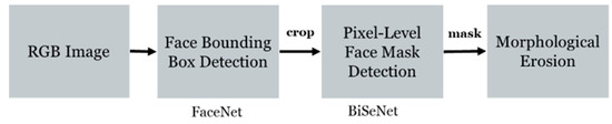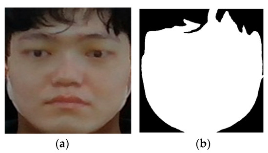 RGB image and corresponding facial region mask: (a) cropped RGB image based on bounding box and (b) extracted facial region mask.