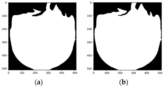 Face mask refinement using morphological erosion: (a) before erosion and (b) after erosion.