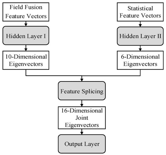 This model uses separate hidden layers consisting of a single layer of inactive linear fully connected layers in different branches to transform and represent the field fusion feature vector and the statistical feature vector, resulting in a 10-dimensional feature vector and a 6-dimensional feature vector. These two feature vectors are then concatenated, and the final 16-dimensional combined feature vector is classified through the output layer. We use Softmax as an activation function in the output layer to obtain the final classification result, using cross entropy loss as the loss function.