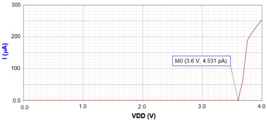 Figure 23 illustrates the simulation results of an OVP circuit. A higher input RF or solar voltage corresponds to a larger voltage output by the DC voltage combiner. Once the output voltage reaches the rated voltage of 3.6 V, the excess voltage is dissipated by the proposed OVP circuit. The conductional current Io of the output transistor Mo surges sharply to stabilize the output voltage of 3.6 V.