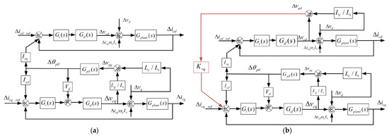 Then, it can be seen in Figure 2a that the output signal of the d axis has an impact on the q axis through the coupling term , and can be expressed as