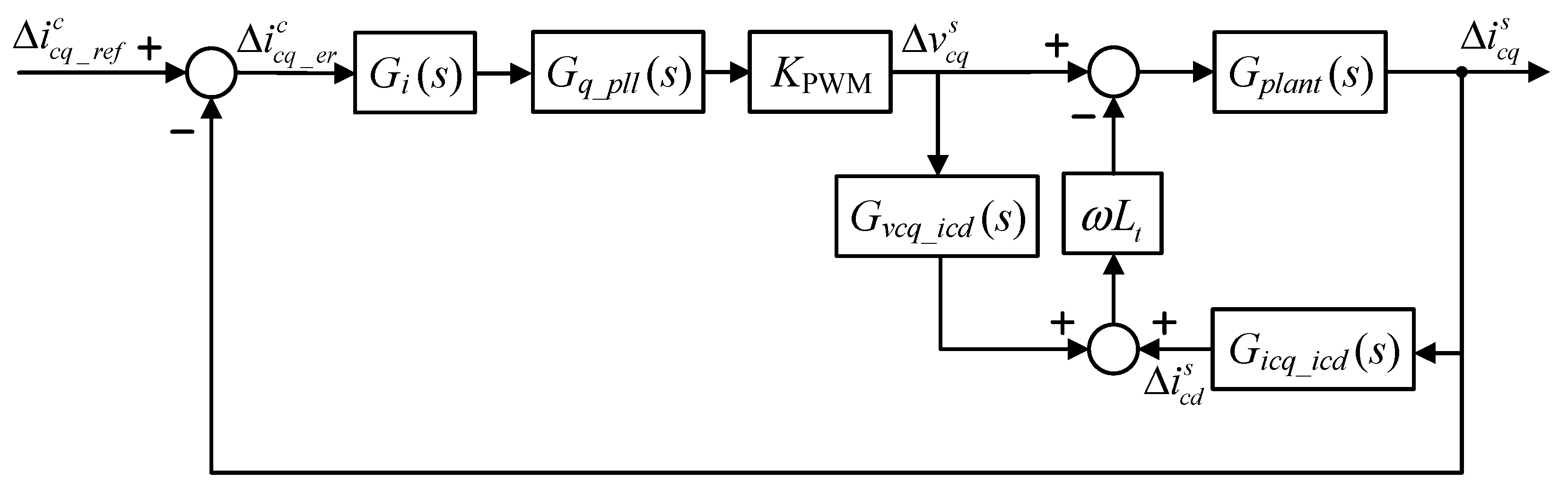 The control block diagram in Figure 2a without droop control can be simplified through derivation into the control block diagram in Figure 3 that only contains the q axis part.