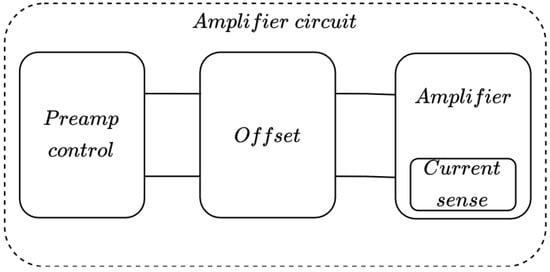 A block diagram of the proposed circuit (Figure 3) shows the roles of the three main parts of the circuit. The first block is used to set the preamplification of the circuit between about one and ten times, the second block is used to compensate for the output offset error, and the third block is the main amplifier circuit, including the current measuring module.