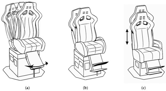 3 degrees of freedom (3DoF) motion movement: (a) Roll movement of the motion simulator. (b) Pitch movement of the motion simulator. (c) Heave movement of the motion simulator.