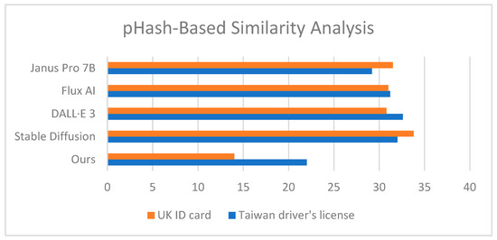 Average pHash distances between generated images and reference document samples for UK ID card and Taiwan driver’s license.