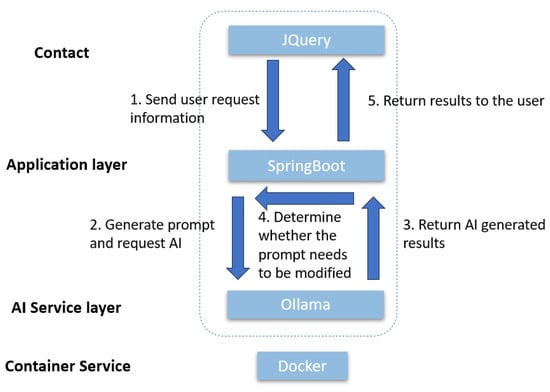 We chose Spring Boot, jQuery, Ollama, and Docker as the technology stack for this system. Spring Boot provided an efficient development experience and simplified configuration management, making it ideal for building and maintaining backend services that need to interact with AI models and the frontend. While modern frameworks like React [39] and Vue [40] were more popular at the time, we chose jQuery due to its use in our previous system. This approach avoided changes to existing functionality and ensured system stability and compatibility. Additionally, jQuery’s simplicity and broad support helped quickly implement dynamic pages and handle backend interactions. Ollama allowed us to run LLMs locally, reducing reliance on cloud-based services and enhancing data privacy and control, which are especially valuable for applications in the education field. Finally, Docker, as a containerization technology, helped us package the system and its dependencies into containers, simplifying deployment, improving maintainability and scalability, and enabling code reuse across different environments.