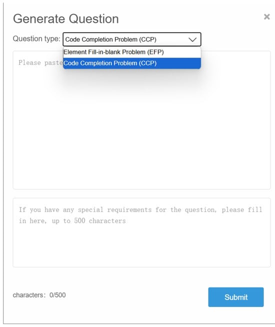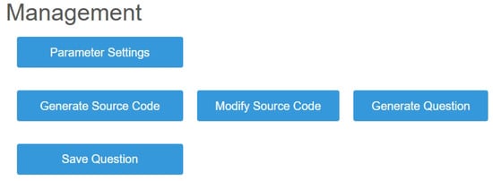 Our system provides four core functions: Figure 3 presents the user interface for setting parameters. Figure 4 presents the user interface for generating code. Figure 5 presents the user interface for modifying questions. Figure 6 presents the user interface for management.