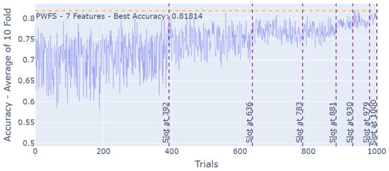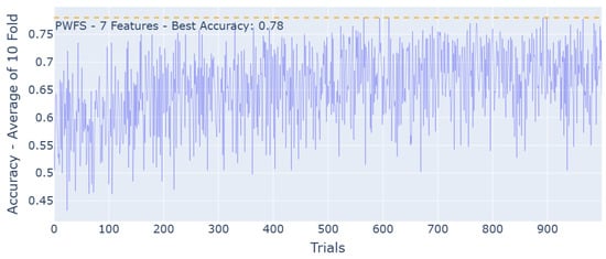 - Execute PWFS until the trial number is met. Report the best combination of features and associated accuracy score.