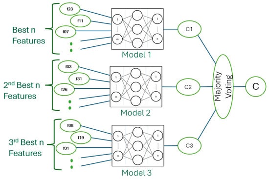 We can train the models, where a set of the best features and a secondary set of subsidiary features with little replication can be provided to train and test two (or more) algorithms, as visualized in Figure 12, where one can model a different latent space in the data better than in another and vice versa. then, we can access the hidden temporal information.