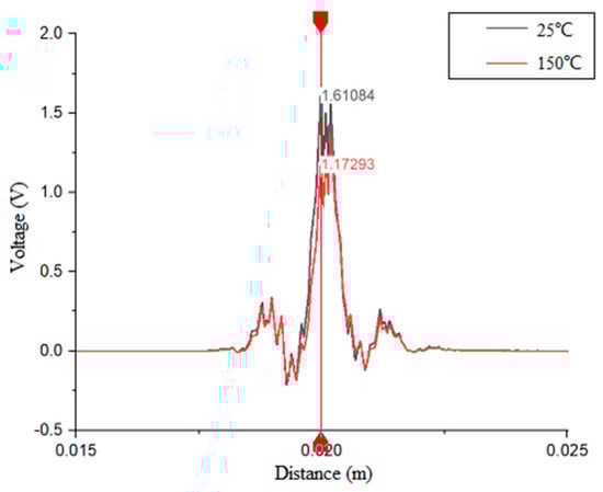 Calculation results are shown in Figure 10. As seen in the figure, the maximum electrical potential of the film reaches 1.61084 V after repolarization (25 °C), which is approximately 1.3 times than that of the un-repolarization film 1.17293 V (150 °C). Simulation results demonstrate the beneficial effects of repolarization.