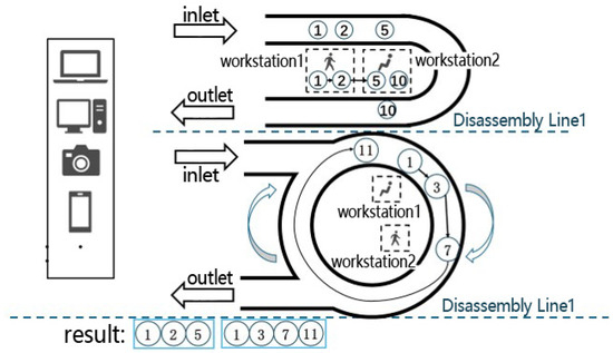 Due to the rapid advancement of technology, new products are continuously emerging on the market. At the same time, End-of-Life (EOL) products are steadily accumulating, and these products are increasingly recycled and reused. The Disassembly Line Balancing Problem (DLBP) has emerged in response to this context. Gungor and Gupta [1] conducted the first scientific research on the DLBP in 2004. Since then, many scholars have examined the DLBP for a variety of disassembly line layouts and proposed corresponding solution approaches. Notably, Altekin [2] proposed the linear disassembly line, while Agrawal [3] introduced the U-shaped disassembly line. The linear disassembly line is a cost-effective option and relatively easy to construct, whereas the U-shaped disassembly line utilizes available space more efficiently. Additionally, the parallel disassembly line improves the utilization of individual workstations, and the bilateral disassembly line serves as an extension of the linear layout. In practical applications, both the linear disassembly line [4] and the U-shaped disassembly line [3] are widely adopted. Meanwhile, scholars have also conducted research on related layouts with a profit-oriented approach [5,6].