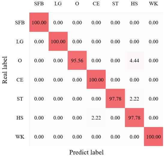 Table 6 provides a detailed summary of the HAR performance in target environments under all cross-environment HAR configurations, where the row index represents the source environment and the column index represents the target environment. The elements in the table represent the HAR accuracy of the target environment when the row-indexed environment is used as the source environment. It can be observed that in the vast majority of cross-environment HAR configurations, the HAR in the target environments achieved reliable performance, demonstrating the effectiveness of the proposed CHARS.