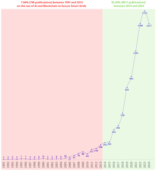 Within the past decade, researchers have extensively explored the use of AI and blockchain solutions for securing smart grids, and it is essential to examine the existing literature to highlight the limitations and opportunities within this field. This section provides a detailed exploration of recent bibliometric studies in this area as presented in Table 1.