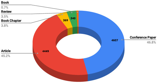During the eligibility stage, the availability of full-text documents was evaluated. Records lacking full-text access were excluded, resulting in the removal of 92 additional entries. Eventually, 9611 records were included in the final bibliometric review.
