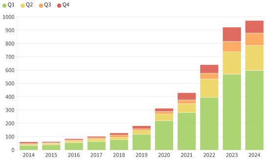 - SJR (SCImago Journal Rank): SJR [27] is an indicator of journal prestige that evaluates the citations received by articles and the quality of the citing journals. Journals are classified into quartiles according to their SJR score.