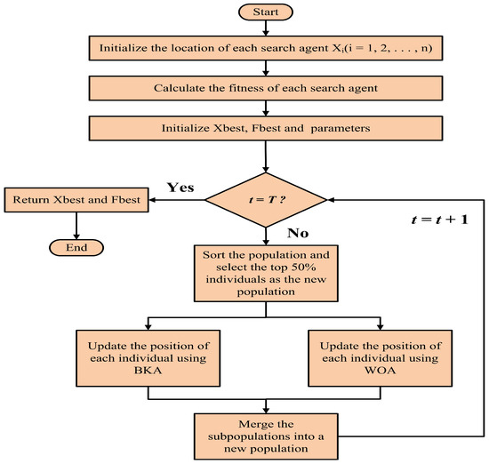 In this study, the proposed BWOA implements a population management strategy to intensively search the space around elite individuals. The workflow is structured as follows: