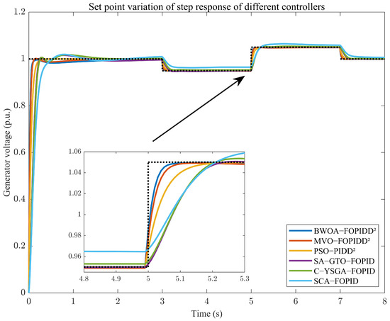 - Tabak, A. Maiden application of fractional order PID plus second order derivative controller in automatic voltage regulator. Int. Trans. Electr. Energy Syst. 2021, 31, e13211. [Google Scholar] [CrossRef]