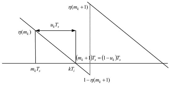 In Figure 1, represents the sampling clock pulse point, which precedes the k-th interpolation instant , This interpolation instant corresponds to the zero-crossing point of the curve, marking the overflow moment of the numerically controlled oscillator (NCO). The recursive relationship governing interpolation control can be derived by expressing two consecutive interpolation instants as follows: