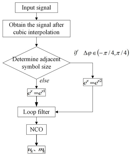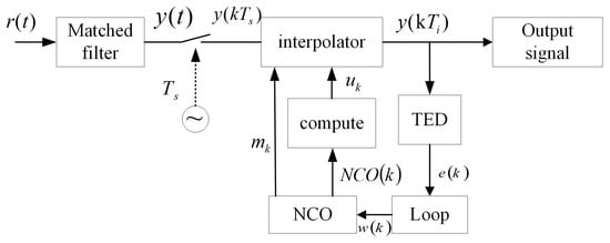 After passing through the interpolation filter, the interpolation timing of the kth symbol can be expressed as , where represents the timing offset estimation of the kth symbol.