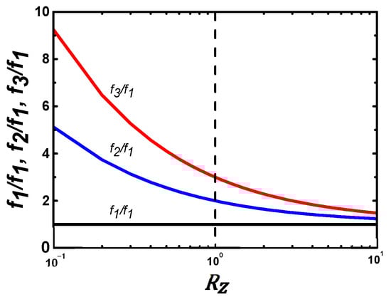f 3 f 1 = θ f 3 θ f 1 = π t a n 1 R z t a n 1 R z .