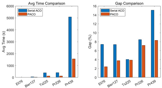 Comparison of the Avg time and Gap between ACO and PACO.