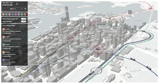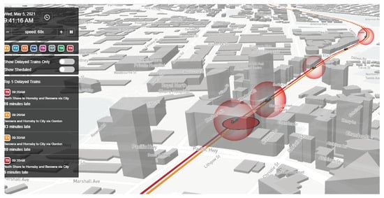 In this research, we have developed a digital twin for the railway network of Sydney, Australia as a case study to demonstrate the system architecture proposed in Section 4.1. A screenshot of the platform is shown in Figure 5.