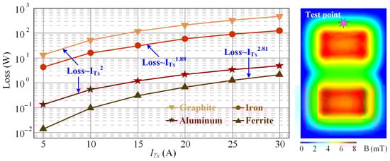 Thermal risks are among the most critical challenges in the magnetic coupler. The coupler structure involves multiple heat-generating components, including Litz-wire coils with resistive losses, ferrite cores with hysteresis and eddy current losses, and aluminum shielding plates that absorb stray magnetic fields via induced eddy currents. Among them, the Litz coils are generally the dominant source of heat, often contributing over 50% of the total thermal loss in typical mid- to high-power configurations [15,102,103,104].